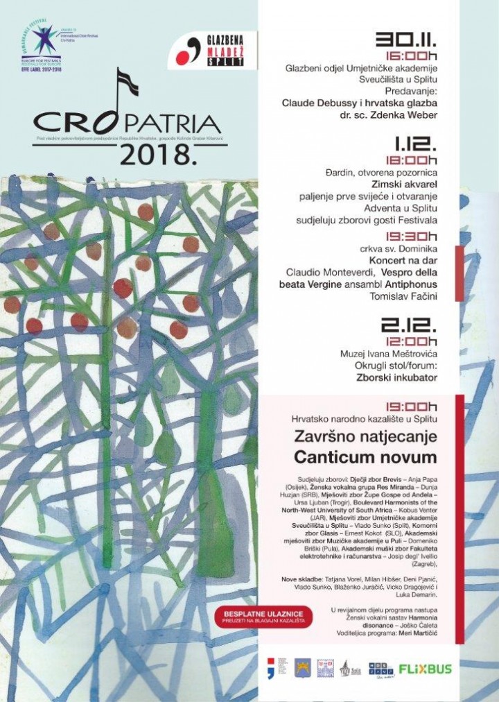 U petak 30.11. započinje 22. Međunarodni zborski festival Cro Patria 2018. Pripremili smo bogat program s predavanjima, koncertima, okruglim stolom i završnim natjecanjem u nedjelju 2.12. u Hrvatskom narodnom kazalištu.